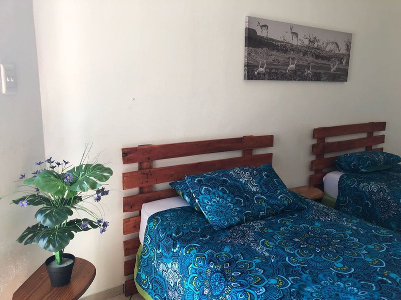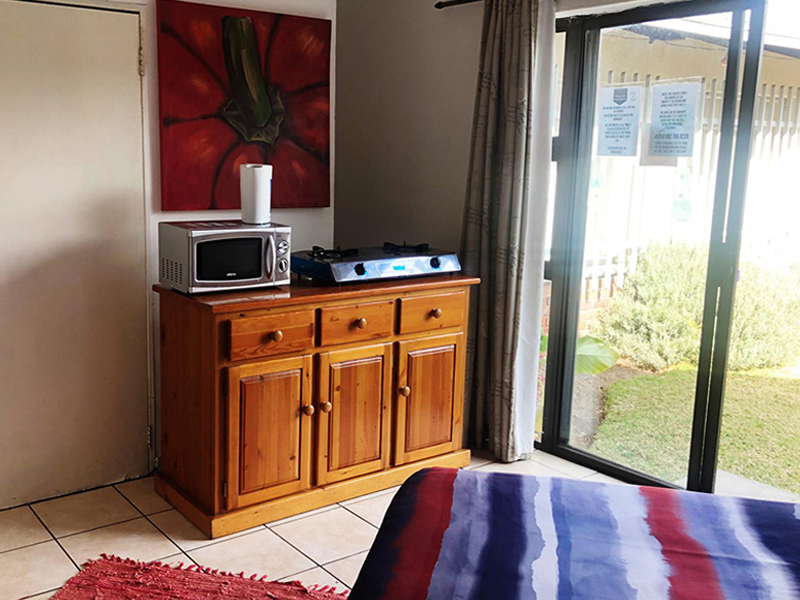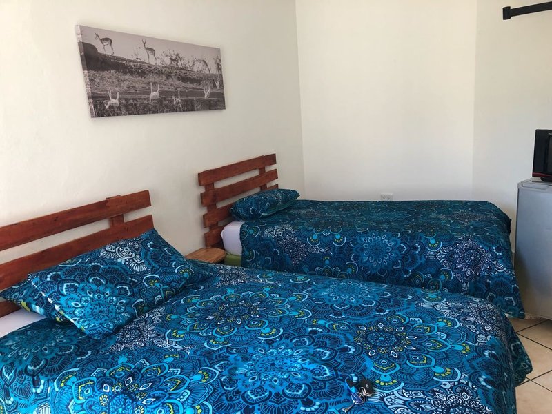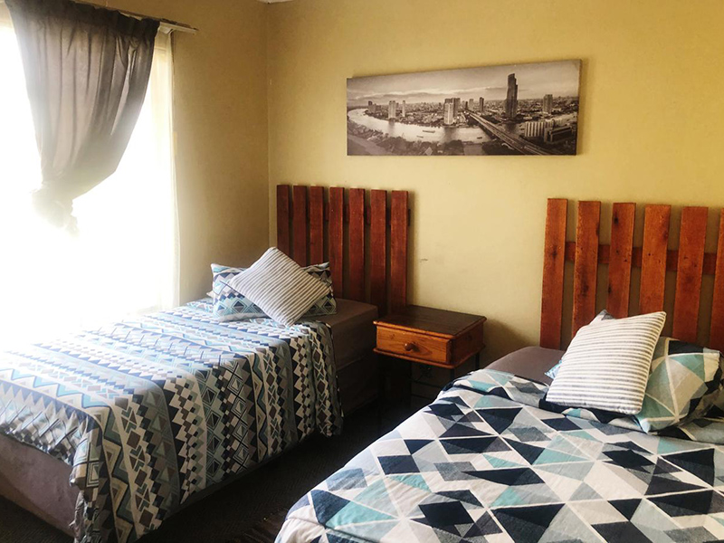 We offer a room with two single beds, communal bathroom shower and bath, communal self-catering kitchen, communal lounge with full Dstv. and braai area.