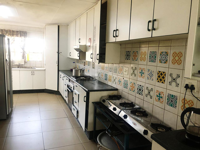 Room 3 furnished with two 3/4 beds, communal bathroom with shower and bath. Communal self-catering kitchen and Lounge with full Dstv and braai area.